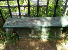 Два покосившихся памятника, сломанная калитка ограды, лавочка требующая покраски |